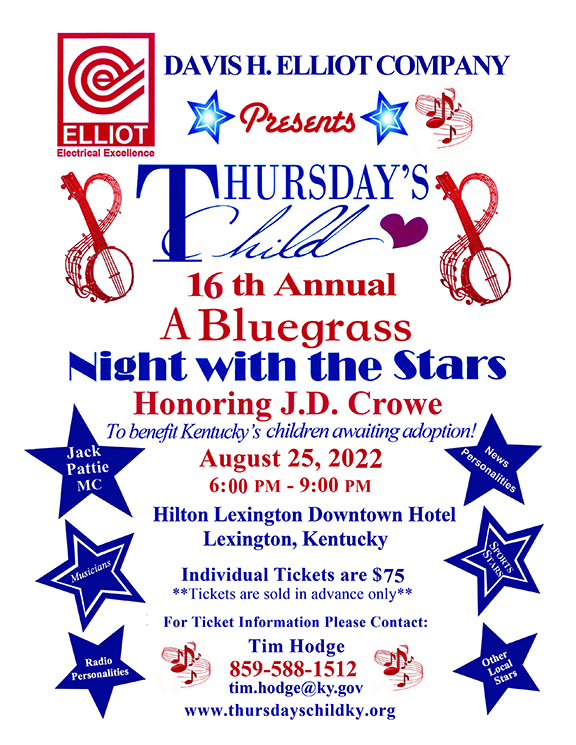 Last year Thursday's Child 16 Annual A Bluegrass Night with The Stars honored J.D. Crowe. on August 25, 2022