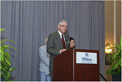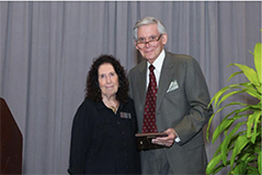 Lydia Akin giving J.D. Crowe Family Presidents award for J.D. Crowes many years of service to Thursday's Child Board